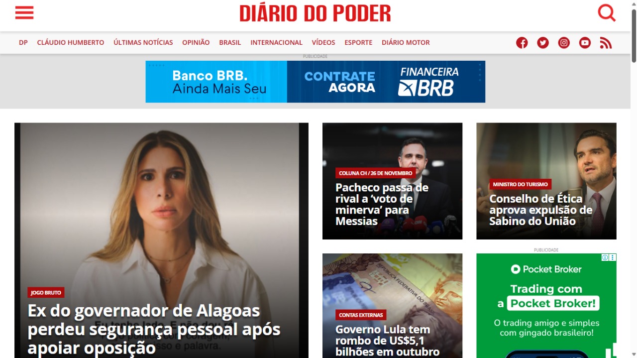 Capa do Diário do Poder desta quarta-feira (26) - Reprodução