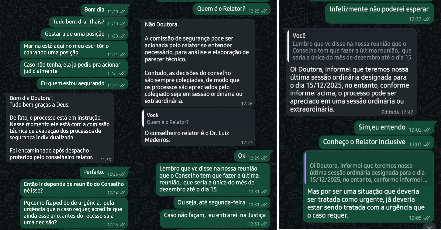 A advogada também questiona a falta de transparência: o Conseg não forneceu cópias dos processos nem a ata da reunião que teria decidido pela retirada, sugerindo que a decisão pode não ter seguido o procedimento legal.