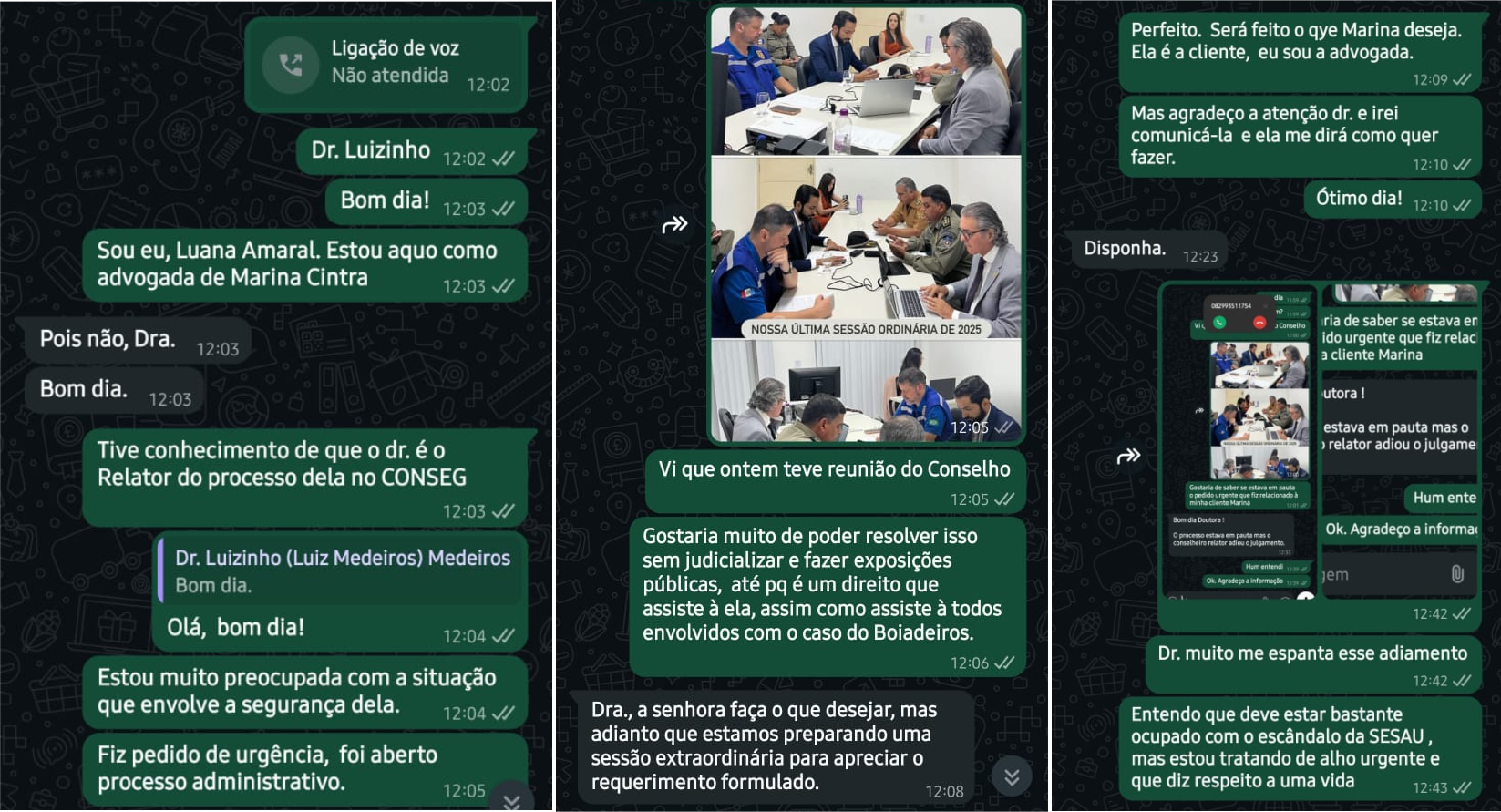 A advogada protocolou um pedido de urgência para reativar a segurança, mas o representante da Seris no Conseg, Luiz de Albuquerque Medeiros Neto, que é o relator do caso e uma pessoa ligada diretamente ao governador Paulo Dantas, retirou o caso da pauta da última reunião do ano sem explicações convincentes. Em prints das conversas, ele teria dito à advogada: “Dra., a senhora faça o que desejar”.